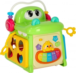 Szukasz zabawki, która naprawdę działa? Ta edukacyjna kostka 4w1 w formie uroczego krokodyla łączy sorter kształtów, interaktywne pianinko z efektami świetlnymi oraz elementy sensoryczne wspierające rozwój dziecka. Dzięki żywym kolorom, ruchomym elementom i wytrzymałemu wykonaniu motywuje dziecko do odkrywania, nauki i zabawy każdego dnia.