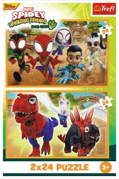 Dziecięce puzzle Trefl 2×24 oferują dwa oddzielne obrazki w jednym opakowaniu z motywem SPIDEY i dinozaury. Każda układanka ma 24 elementy, więc jest idealna dla małych miłośników superbohaterów i dinozaurów. Dzięki dwóm ilustracjom układanie jest jeszcze zabawniejsze i może zaangażować jednocześnie więcej dzieci.