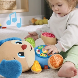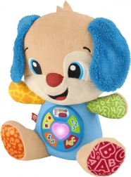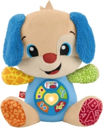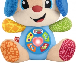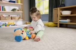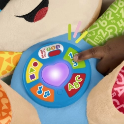 Ten mięciutki przyjaciel jest idealny dla maluchów od 6 miesięcy. Dzieci poznają pierwsze słówka, kolory, kształty, literki i liczenie, a jednocześnie ćwiczą motorykę małą. Piesek ma na brzuszku świecące serduszko i kolorowe przyciski, które aktywują muzykę, dźwięki i urocze frazy.