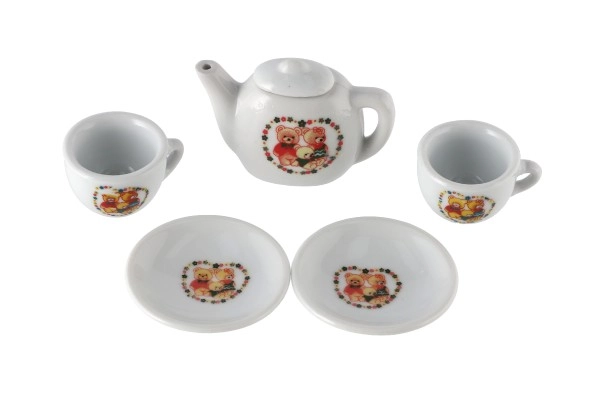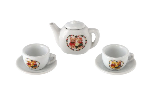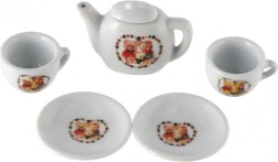 Zestaw zawiera czajniczek, filiżanki i spodki z uroczymi motywami misiów i zwierzątek, które zachwycają od pierwszego spojrzenia. Kompaktowe wymiary 18 × 11,5 × 3,5 cm ułatwiają przechowywanie i przenoszenie.