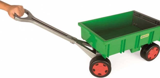Przyczepa z serii Gigant to świetny pomocnik do codziennej zabawy. Dzięki solidnej konstrukcji i wysokiemu udźwigowi dzieci z łatwością przewiozą zabawki, piasek czy liście. Otwierana klapa umożliwia wygodne załadunek i rozładunek, a dołączony uchwyt czyni z niej idealny wózek do ciągnięcia.
