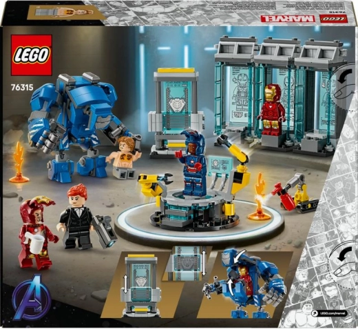 Zbuduj ikoniczną zbrojownię IRON MAN z przezroczystymi niebieskimi kapsułami, w których wyróżniają się trzy słynne pancerze. O akcję zadba artykulacyjny mech Igor MK3 z kokpitem na minifigurkę, para ramion robotycznych na stanowisku serwisowym oraz skaner do diagnostyki. Zestaw idealny do odtwarzania scen z filmów i stylowej ekspozycji.