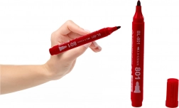 Niezawodny permanentny marker do pisania, znakowania i rysowania na kartonie, plastiku, metalu, szkle, papierze i drewnie. Intensywny czerwony atrament jest trwały kolorystycznie, nie blaknie i pozostaje czytelny przez długi czas. Szybkie schnięcie zapobiega rozmazywaniu nawet na gładkich powierzchniach.