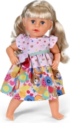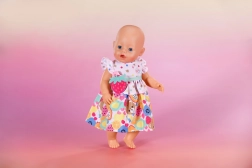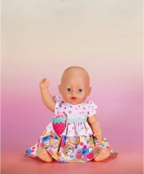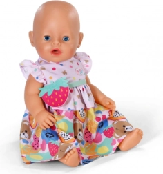 Ożyw garderobę lalek BABY born tą czarującą sukienką z owocowym nadrukiem. Dzięki falbankowym detalom i zabawnemu paskowi z truskawką strój wygląda świeżo i radośnie. Doskonale pasuje do lalek i misiów BABY born Teddy w rozmiarze 43 cm.