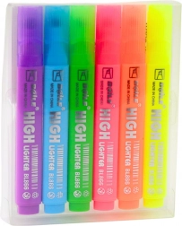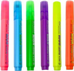 Zestaw fluorescencyjnych zakreślaczy oferuje intensywne neonowe kolory, które nadają tekstowi wyjątkowy wygląd. Dzięki miękkiemu, skośnemu szpicowi możliwe jest rysowanie cienkich i szerokich linii, co umożliwia różnorodne zastosowania.