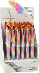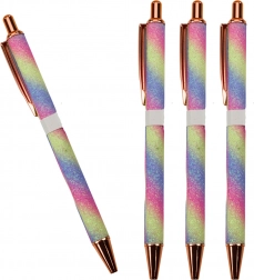 Metalowe brokatowe pióro jest wyposażone w precyzyjną końcówkę o średnicy 1,0 mm, co gwarantuje płynne i równomierne pisanie. Wysokiej jakości wkład z niebieskim atramentem zapewnia jasne i trwałe zapisy, podczas gdy mechanizm klikowy umożliwia szybkie i wygodne schowanie wkładu po użyciu.