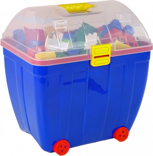 Duża walizka z kolorowymi klockami to idealny zestaw dla małych budowniczych. Zawiera około 280 elementów, w tym okienka, drzwi, dachy, drzewka, figurki, pociągi i samochodziki. Klocki zostały zaprojektowane tak, aby były bezpieczne dla dzieci od 2 lat.