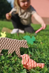 Materiał VYLEN to czeski certyfikowany wyrób, regularnie testowany i bezpieczny dla zdrowia. Zabawki są odporne na rozrywanie i łatwe w utrzymaniu – w razie zabrudzenia wystarczy je opłukać.