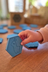- Zawiera 10 par zwierzątek na piankowym heksagonie.