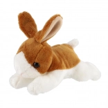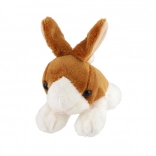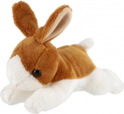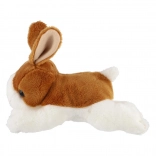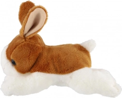Uroczy brązowo-biały pluszowy króliczek w pozycji leżącej ucieszy dzieci od urodzenia. Jest wyjątkowo mięciutki, bezpieczny dla niemowląt i dzięki kompaktowemu rozmiarowi świetnie leży w małych rączkach. Idealny do przytulania, wyciszenia i zabawy w wyobraźnię.