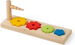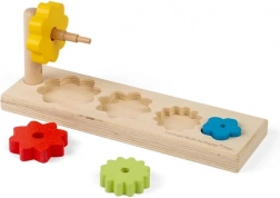 Ta drewniana układanka łączy dopasowywanie i nakładanie w jedną, wciągającą aktywność. Cztery kolorowe kwiaty sortuje się według wielkości i kształtu, co naturalnie wspiera rozwój umiejętności poznawczych oraz percepcję przestrzenną. Dzieci trenują chwyt, precyzję i cierpliwość podczas prawidłowego umieszczania poszczególnych elementów.