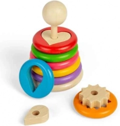 Każdy krążek skrywa inny kształt – dzieci trenują logikę, rozpoznawanie kształtów i cierpliwość podczas układania.
