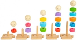 Nakładanie krążków i główek na słupki rozwija chwyt, precyzję i koordynację ręka–oko – idealne dla dzieci od 1. roku życia.