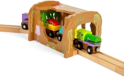 Tunel wykonano z drewna z certyfikatem FSC®, co gwarantuje zrównoważone pochodzenie materiału. Wykończenie stanowią nietoksyczne farby i lakiery spełniające aktualne europejskie normy bezpieczeństwa. Dzięki standardowym wymiarom tunel jest łatwo kompatybilny z popularnymi drewnianymi kolejkami na rynku.