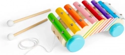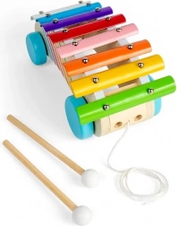 Dzięki kółkom i sznurkowi dzieci chętnie wożą ksylofon, wzmacniając koordynację, równowagę i dużą motorykę.