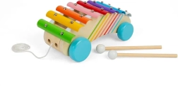 Odkryj radość z muzyki dzięki temu kolorowemu ksylofonowi do ciągnięcia dla maluchów. Łączy w sobie zabawkę muzyczną i wózek do ciągnięcia w jednym, ma 8 metalowych klawiszy, 2 drewniane pałeczki oraz solidne kółka do zabawy gdziekolwiek. Wykonany z drewna z certyfikatem FSC® i pokryty nietoksycznymi farbami dla bezpiecznej zabawy i rozwoju motoryki, koordynacji i kreatywności.