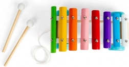 Osiem metalowych klawiszy pomaga dzieciom rozwijać słuch, rytm i kreatywność. Wesołe kolory ułatwiają orientację w dźwiękach.