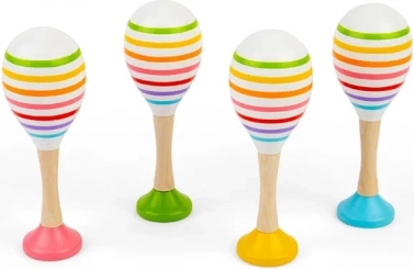 Marakasy wydają przyjemny, nierażący grzechoczący dźwięk, który wspiera percepcję sensoryczną i pierwsze muzyczne kroki.