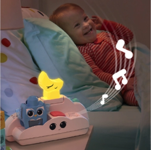 Tryb wieczorny oferuje uspokajające kołysanki, stonowane efekty świetlne i projektor gwiazd dla spokojnego zasypiania. Tryb poranny rozświetla dzień optymistycznymi piosenkami, dźwiękami przyrody i świeżymi wzorami świetlnymi. Dzięki prostemu sterowaniu i solidnym klockom zestaw jest idealny dla maluchów.