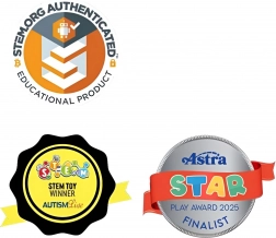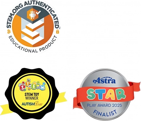 Unikalny obrotowy system z blokadą w 24 pozycjach zapewnia konstrukcjom stabilność i wspiera percepcję przestrzenną, małą motorykę oraz kreatywne myślenie. Zestaw idealny do aktywności STEAM w domu i w szkole, sprawdzi się też jako relaksująca pomoc antystresowa dla dzieci i dorosłych.