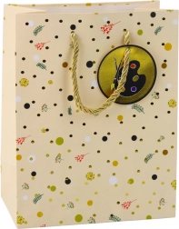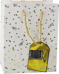 Torba podarunkowa na wyjątkowe szkolne okazje jest świetnie zaprojektowana z nowoczesnym wzorem inspirowanym motywami szkolnymi, które przyciągają uwagę i nadają prezentowi wyjątkowy charakter. Wykonana z wysokiej jakości ozdobnego kartonu, zapewnia trwałość i estetyczny wygląd nawet przy przenoszeniu cięższych przedmiotów. Złote uchwyty sznurkowe zapewniają wygodę i bezpieczne przenoszenie.