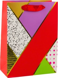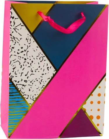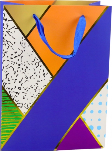 Każda torba jest nie tylko estetycznie dopracowana, ale także wyposażona w błyszczące akcenty, które dodają elegancji i oryginalności. Geometryczne wzory w połączeniu z abstrakcyjnymi i kontrastowymi kolorami tworzą bardzo efektowną kompozycję wizualną.