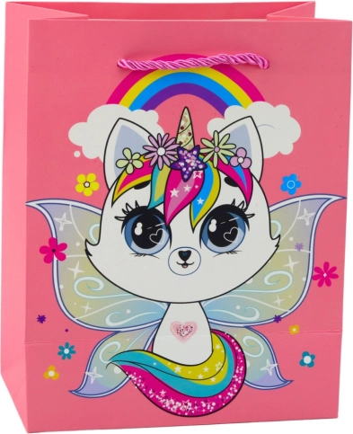 Torebka prezentowa została zaprojektowana z atrakcyjnymi bajkowymi motywami, takimi jak kotki, księżniczki i jednorożce, które oczarują każdą małą dziewczynkę.