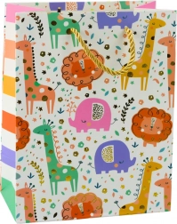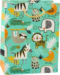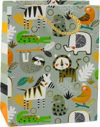 Ta papierowa torba prezentowa z motywami zwierząt safari doda uroku Twoim podarunkom. Każda torba ma solidne i kolorowe wykończenie, które przyciąga wzrok. Solidne uchwyty zapewniają wygodne noszenie, a atrakcyjne wzory pełne radosnych zwierzątek spodobają się zarówno dzieciom, jak i dorosłym.