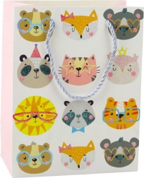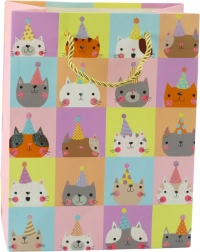 Dzięki wymiarom 23 x 18 x 10,5 cm torebka świetnie nadaje się do pakowania różnych rodzajów upominków – od drobiazgów, przez kosmetyki, po książki i inne akcesoria. Dostępna w czterech różnych wzorach, każdy z motywem kotków w radosnych kolorach i z brokatowym wykończeniem. Świetny wybór na urodziny, święta, Dzień Dziecka lub inne wyjątkowe okazje!