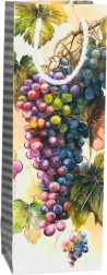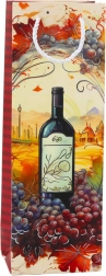 Kolorowe motywy z butelkami wina i winogronami nadają torbie elegancki wygląd.