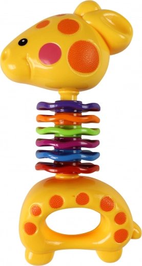 Urocza grzechotka w kształcie żyrafy jest idealna dla najmłodszych. Dzięki przyjemnym kolorom i efektowi grzechotania wspiera rozwój małej motoryki oraz percepcji wzrokowej. Lekka forma łatwo leży w dłoni i bawi maluszka w domu oraz w podróży.