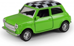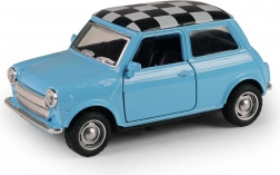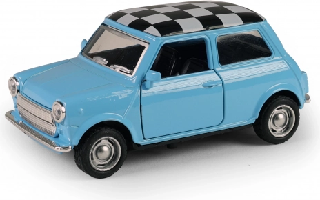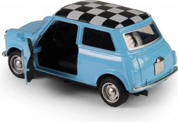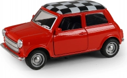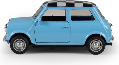 Chromowane zderzaki, kratka chłodnicy i ikoniczny szachownicowy dach nadają modelowi wierny wygląd klasycznego Mini.