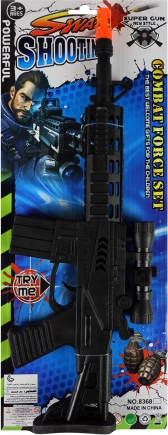 Zabawka nadaje się do tematycznych zabaw w żołnierzy lub policję i jest świetnym prezentem dla małych miłośników scen akcji. Zalecamy używanie w bezpiecznym otoczeniu i dbanie o kulturalną zabawę.