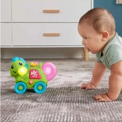 Interaktywna zabawka Kameleon od Fisher-Price Link Squad to wesoły przyjaciel na kółkach, który oferuje muzyczną zabawę. Dzięki interaktywnym elementom, takim jak kolorowe kółeczko i boczny przycisk, kameleon rozświetla się w rytmie piosenek i dźwięków, pomagając dzieciom rozwijać ich zdolności i poznawanie kolorów.