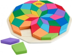 Drewniane puzzle Mandala od Fisher-Price to idealna zabawka dla dzieci, które chcą się nauczyć rozwiązywania problemów i rozwijać drobną motorykę. Składa się z 40 kolorowych elementów, które można dowolnie układać lub sortować na specjalnej podkładce z rowkami, pomagając tworzyć geometryczny wzór mandali. To kolorowe puzzle pomagają także rozwijać koncentrację i koordynację ręka-oko.
