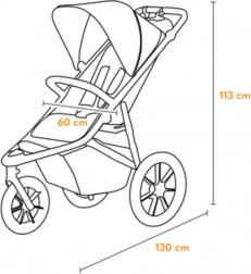 - Praktyczne wyposażenie: funkcjonalna folia przeciwdeszczowa, możliwość prania tapicerki i kosza ręcznie w 30 °C