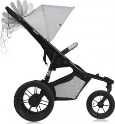 Wózek spacerowy LIONELO Azura został zaprojektowany dla rodziców szukających niezawodnego rozwiązania na co dzień. Duże pompowane koła i skuteczne zawieszenie zapewniają gładką jazdę po chodniku i w lekkim terenie, a szerokie i wysokie siedzisko gwarantuje komfort także starszym dzieciom. Budka w rozmiarze XXL z wodoodporną powłoką i filtrem UPF50+ chroni przed słońcem i deszczem.
