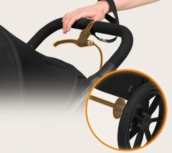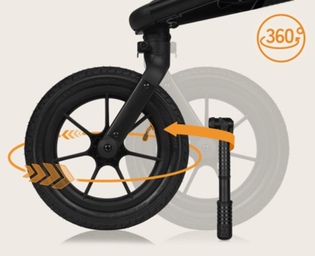 Duże pompowane koła oraz obrotowe przednie koło 360° z blokadą gwarantują doskonałą zwrotność w mieście i w terenie oraz płynną, komfortową jazdę dla dziecka.