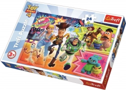 Te wysokiej jakości puzzle podłogowe marki TREFL przedstawiają ulubionych bohaterów z filmu TOY STORY 4 w atrakcyjnej i kolorowej odsłonie. Dzięki 24 maxi elementom układanie jest przejrzyste i proste, więc do zabawy mogą dołączyć także młodsze dzieci.