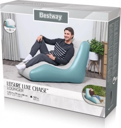 Dmuchany fotel BESTWAY łączy nowoczesny design z maksymalnym komfortem. Ergonomiczny kształt wspiera plecy, flokowane siedzisko jest przyjemne w dotyku, a wytrzymały materiał zapewnia długą żywotność. Dzięki kompaktowym wymiarom sprawdzi się w salonie, sypialni, pokoju gier oraz na tarasie.