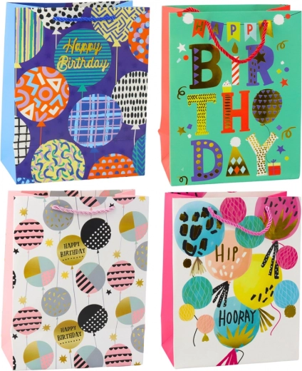 Różne motywy z balonami, gwiazdkami i napisami „Happy Birthday” nadadzą prezentowi świątecznego charakteru i przyciągną uwagę.