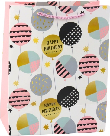 Dzięki uniwersalnemu rozmiarowi 23 × 18 × 10,5 cm jest idealna na książki, kosmetyki, drobną elektronikę czy słodycze. Do wyboru różne barwne wzory z balonami, gwiazdkami i radosnymi napisami, które podkreślą wyjątkowość urodzin.