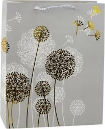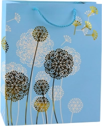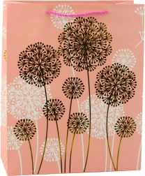 Ta stylowa papierowa torebka z delikatnym naturalnym wzorem dmuchawców oraz złotymi i białymi akcentami nada Twojemu prezentowi luksusowy charakter. Sprawdzi się na urodziny, rocznice, śluby i rodzinne uroczystości, doskonale wpisując się w nowoczesne trendy dekoracyjne.