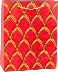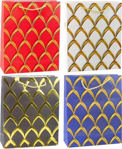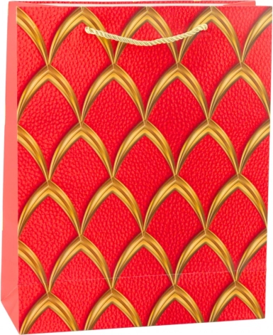 Elegancka torebka prezentowa z luksusowym złotym wzorem, dostępna w kolorach czerwonym, białym, czarnym i niebieskim. Wykonana z wysokiej jakości ozdobnego kartonu z sznurkowymi uchwytami dla wygodnego noszenia. Idealna na urodziny, rocznice, święta i uroczyste okazje.