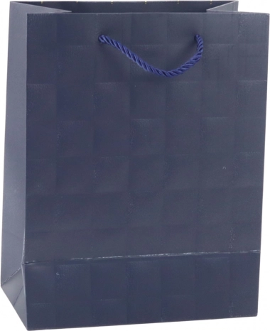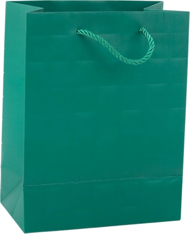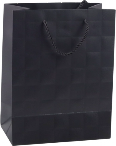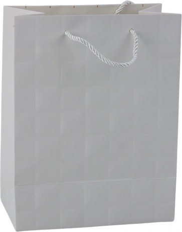 Elegancka torebka prezentowa z delikatnym tłoczonym wzorem kwadratów doda szyku każdemu podarunkowi. Wykonana z wysokiej jakości ozdobnego kartonu z mocnymi sznurkowymi uchwytami dla wygodnego i bezpiecznego przenoszenia. Uniwersalny rozmiar 23 × 18 × 10,5 cm sprawdzi się na mniejsze i średniej wielkości prezenty, a ponadczasowy, minimalistyczny design pasuje na każdą okazję.