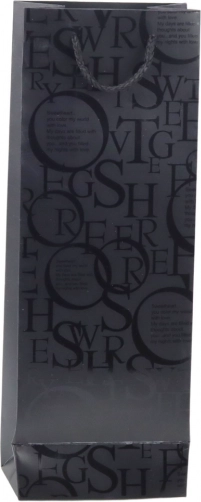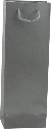 Elegancka torebka prezentowa na butelkę z wysokiej jakości papieru o minimalistycznym designie i tłoczonym wzorze liter. Ma mocne, plecione sznurkowe uchwyty dla bezpiecznego przenoszenia i sprawdzi się na wino, wina musujące oraz domowe lemoniady. Dostępna w 4 luksusowych kolorach: czarnym, srebrnym, grafitowym i złotym.