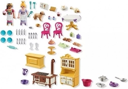 Zanurz się w świat kreatywnej zabawy z królewską kuchnią Playmobil Princess Magic. Dwie księżniczki, ubrane w urocze fartuszki, przygotowują smakołyki i serwują je na ozdobnych tacach. Zestaw oferuje wiele szczegółów, w tym ładnie zaprojektowane meble i realistyczne przybory kuchenne, które ożywiają magię królewskiego gotowania.