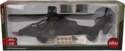 Realistyczny model bojowego śmigłowca w skali 1:50 od marki SIKU ucieszy małych i dużych fanów techniki. Oferuje metalowe nadwozie z odlewów ciśnieniowych, ruchome wirniki oraz działający wyrzutnik rakiet ze sprężynowym mechanizmem. Model utrzymany jest w wojskowej zieleni i czerni, nie zawiera PVC i spełnia międzynarodowe normy bezpieczeństwa dla zabawek. Odpowiedni dla dzieci od 3 lat.