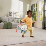 Boczna kieszonka zachęca do wkładania i wyjmowania, a ptasia grzechotka i brzęczące buciki rozwijają koordynację oraz percepcję słuchową.