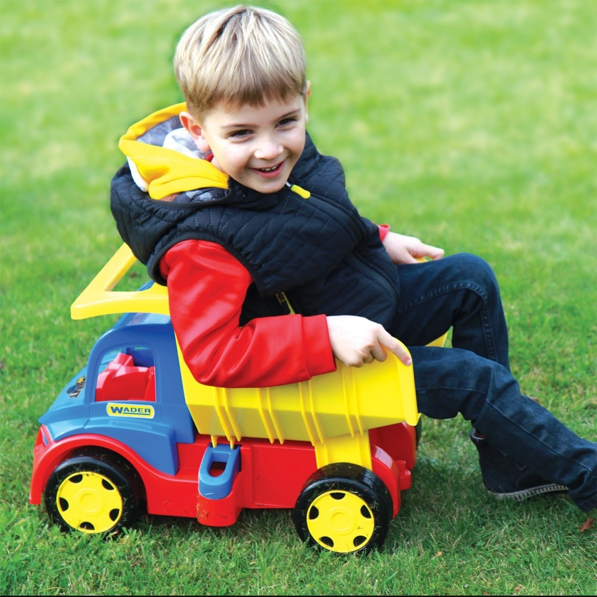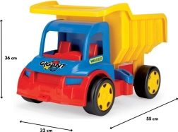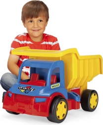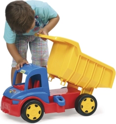 Odkryj solidną dziecięcą wywrotkę WADER GIGANT o długości 55 cm z otwieraną skrzynią ładunkową i podwójnymi zaczepami do podłączenia przyczepy lub linki holowniczej. Dzięki udźwigowi do 150 kg nadaje się do wożenia ładunków i siadania przez dzieci, wykonana z bezpiecznego i wytrzymałego plastiku do zabawy w domu i na zewnątrz, wspiera motorykę małą, koordynację i wyobraźnię.